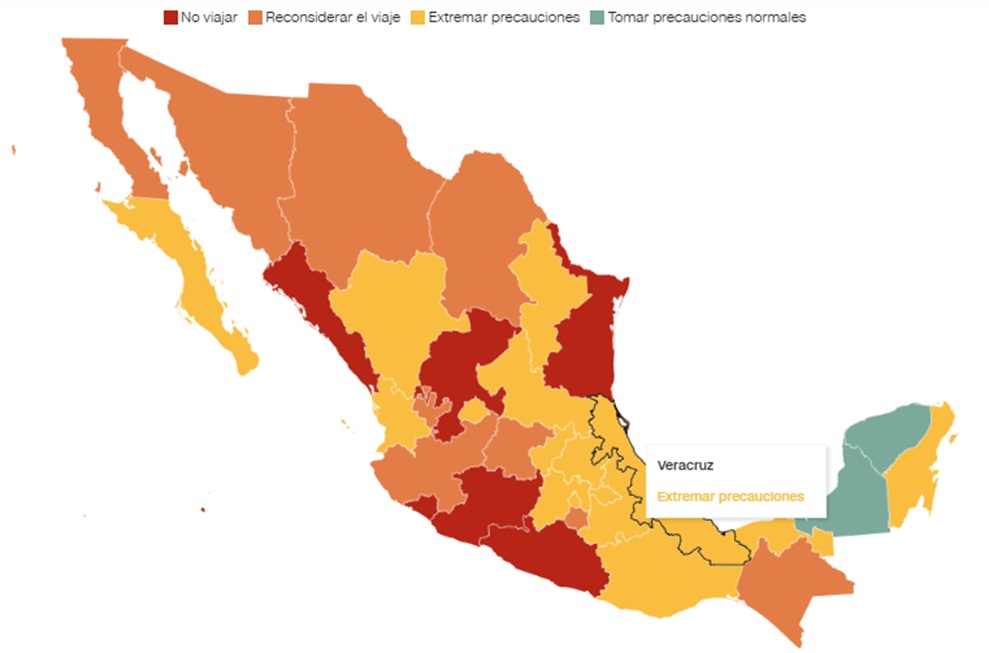 Al colocar al estado de Veracruz en el nivel dos, significa que Estados Unidos aconseja a sus ciudadanos tomar precauciones reforzadas al visitar la entidad.