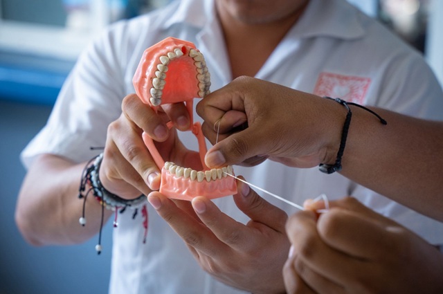 El odontólogo Mario Cruz García, es el encargado de brindar las charlas, donde se abordan las técnicas correctas de limpieza dental, desde temprana edad y la importancia de acudir periódicamente a consultas como parte integral de la salud en general.