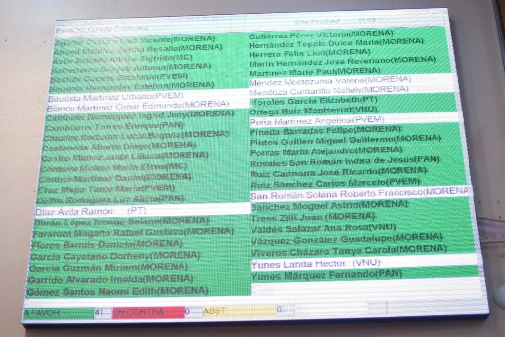Xalapa, Ver., 14 de agosto de 2025.- Por unanimidad, el Pleno de la LXVII Legislatura aprobó el dictamen de decreto que reforma el artículo 230 BIS del Código Financiero de Veracruz, por el cual los recursos obtenidos por la venta de alimentos en tiendas escolares del sistema público en el Estado sean destinados para la mejora y conservación de la infraestructura física de los mismos y servicios correlacionados.