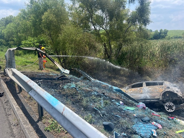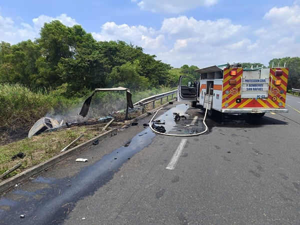 El accidente ocurrió la tarde de este viernes en dicha autopista, cuando una camioneta Toyota Yaris, dio varias volteretas sobre la autopista y terminó por salirse de su carril para estrellarse contra la barra de contención y sorpresivamente la unidad se ve envuelta en llamas.