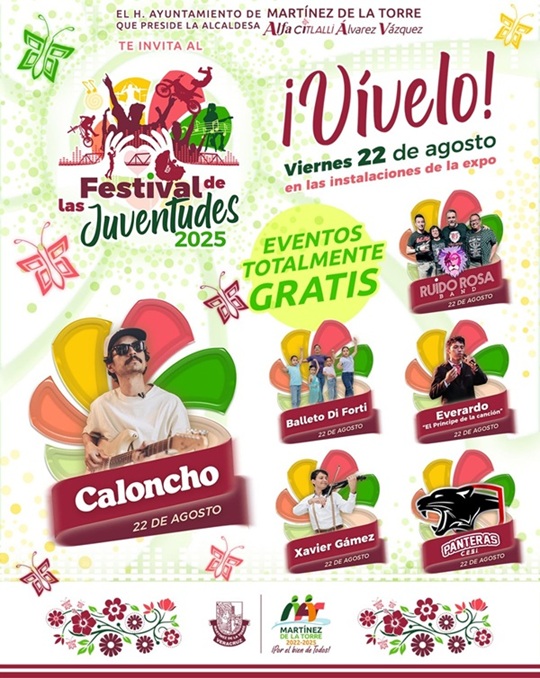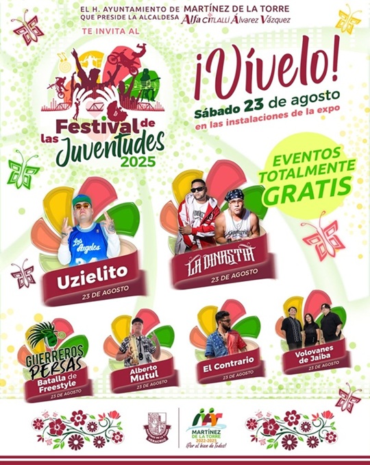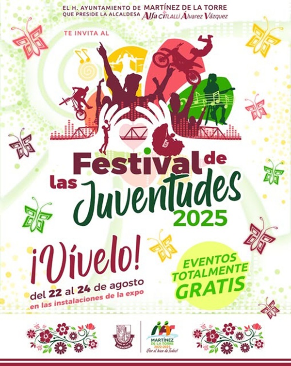 Ya inició la cuenta regresiva para el arranque del “Festival de las Juventudes 2025”, evento que es iniciativa del Gobierno de Martínez de la Torre presidido por la Alcaldesa Alfa Citlalli Álvarez Vázquez, el cual tiene como finalidad que los jóvenes de su municipio y la región pasen un momento de esparcimiento a la par de los cursos y charlas sobre temas importantes para su desarrollo.