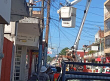 Personal del Alumbrado público acude para retirarlo Martínez de la Torre, Ver. Por cuestiones extrañas, un poste del alumbrado público cae y sé dañan las luminarias, un