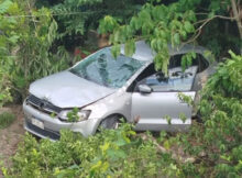 Su conductor resultó con golpes leves Martínez de la Torre, Ver. Y vivió para contarlo, conductor de un automóvil Volkswagen de la línea Polo, con placas de
