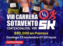 Será el domingo 23 de noviembre. La Universidad de Sotavento en coordinación con el Honorable Ayuntamiento de Coatzacoalcos y la Dirección Municipal del Deporte; convoca a la VIII