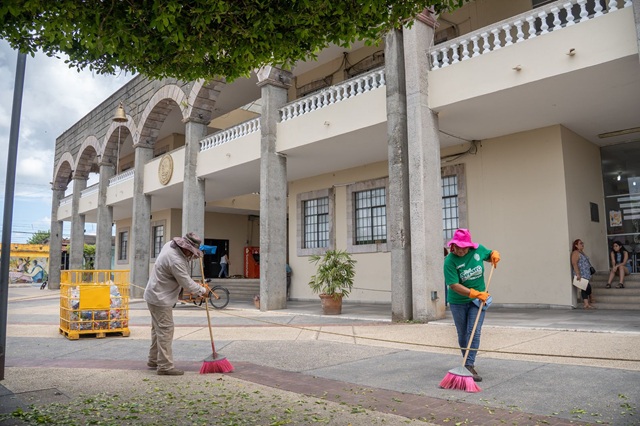 Departamento de Ornatos mantiene trabajos de chapeo, poda y limpieza de espacios públicos de Cosoleacaque