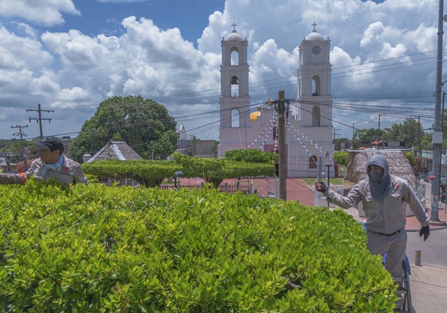 Este martes, los trabajadores estuvieron con labores de mantenimiento en la calle Adolfo López Mateos, parque recreativo y cancha de futbol de la congregación de San Pedro Mártir, en la calle Guadalupe Victoria de la colonia Patria Libre, en áreas verdes de la capilla del fraccionamiento Arboledas y en el parque Miguel Hidalgo de la cabecera municipal.