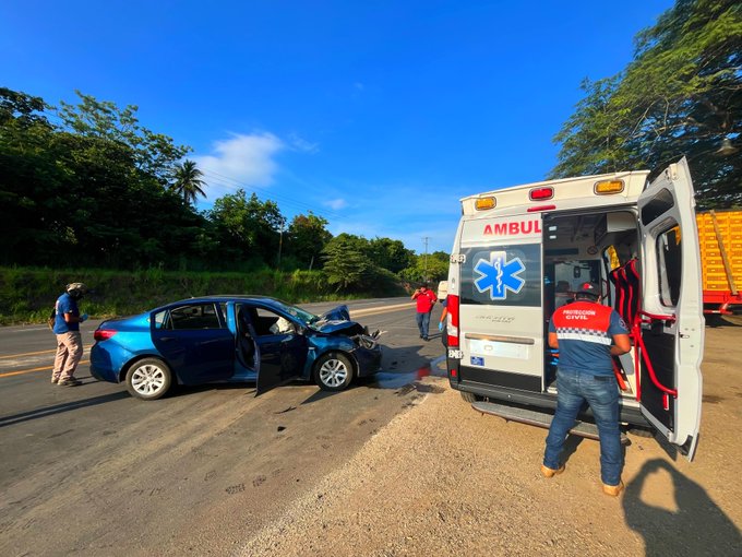 El percance involucró a un automóvil Chevrolet Onix color azul, conducido por el enfermero Jahir Fonseca Rosas, de aproximadamente 35 años de edad y vecino de Soconusco, quien resultó lesionado tras impactarse contra un camión que transportaba rejas amarillas para pollos.