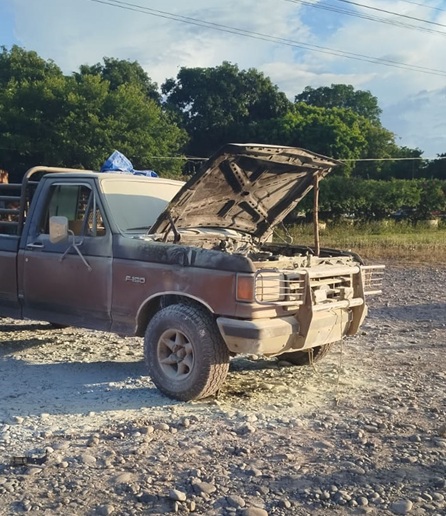 Una camioneta Ford, al presentar un corto circuito en el sistema eléctrico, provocó que todo el plástico que lleva dentro se incendiara.