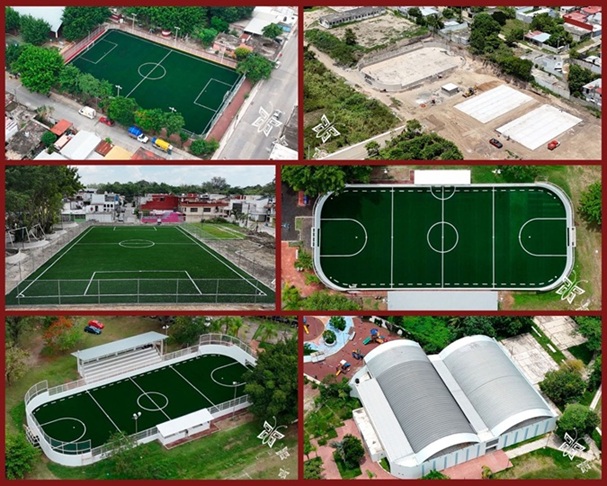 Estos dos espacios deportivos son parte de un paquete de obras dedicadas a este rubro entre las que también se incluyen dos canchas más de pasto sintético en las colonias Maloapan y la próxima unidad deportiva de la colonia Elba Esther Gordillo, además de una cancha con duela en la unidad deportiva de la EXPO, y 3 canchas de sus múltiples, obras que se estarán inaugurando próximamente.