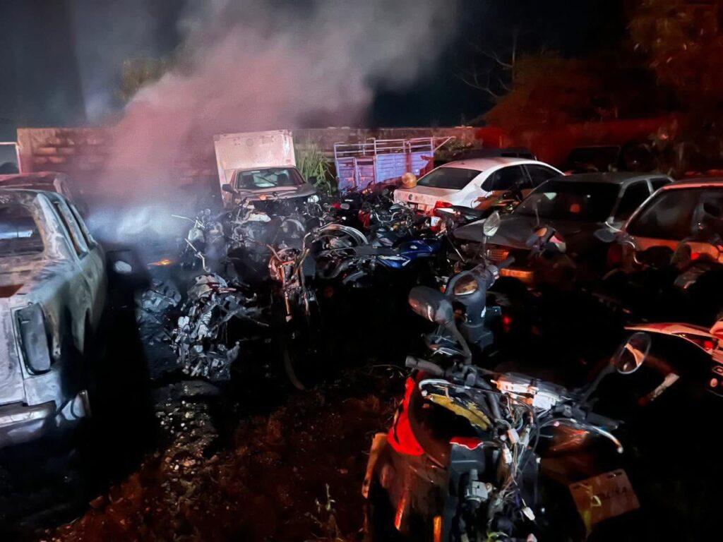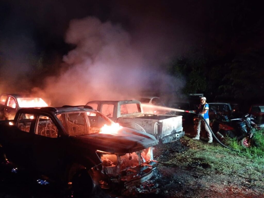 Incendian corralón de “Grúas MG” en Acayucan; 27 vehículos afectados