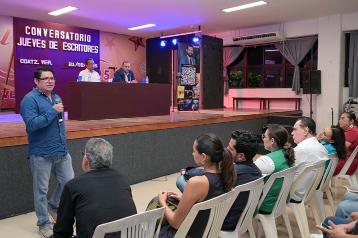 La noche de este jueves, la Casa de la Cultura de Coatzacoalcos recibió al escritor porteño, Juan Manuel Rodríguez Caamaño, como invitado especial del programa “Jueves de Escritores”, evento organizado por la Jefatura de Cultura del Gobierno Municipal que impulsa el talento literario de la región sur de Veracruz.