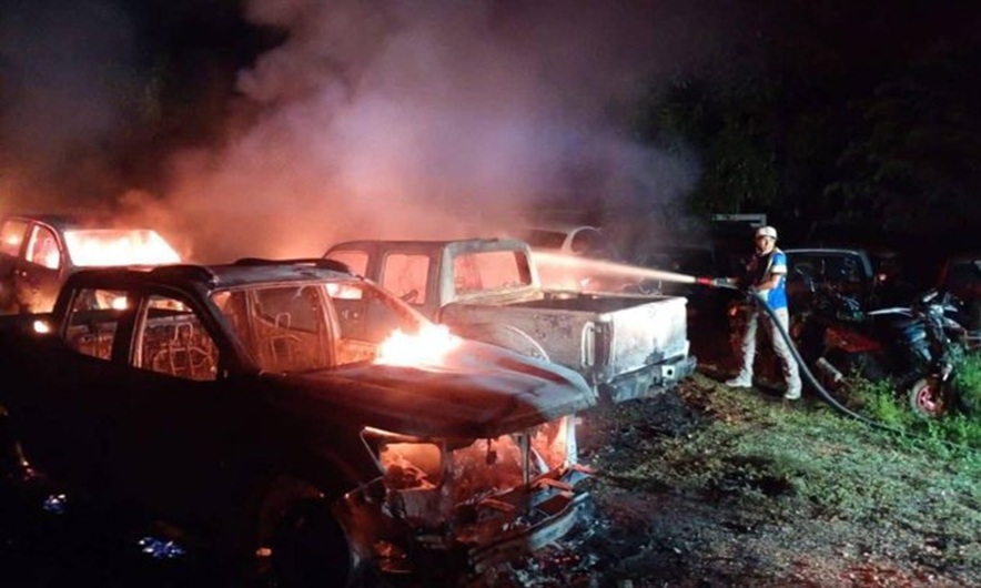 Tiran bombas molotov y queman 27 vehículos en Acayucan