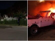 MINATITLÁN, Ver.- La empresa de grúas MG fue nuevamente blanco de un ataque, cuando una de sus unidades, una grúa International con el número económico 54, fue incendiada