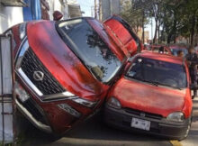 XALAPA, Ver..- Un accidente múltiple generó caos y asombro entre automovilistas y transeúntes en la avenida Lázaro Cárdenas, a la altura de la avenida Encanto, justo frente a
