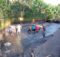Tras el paso del torrencial aguacero, acompañado de descargas eléctricas, el gobierno municipal que preside Salvador Murrieta Moreno, a través de protección civil PC y seguridad pública brinda puntual atención y seguimiento al tema específico del socavón registrado en la carretera Tlapacoyan – Martínez de la Torre.
