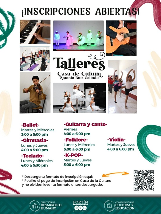 Las inscripciones ya se encuentran abiertas en Casa de Cultura de 8:30 am a 4:30 pm, mayores informes puedes comunicarte al 2717133525.