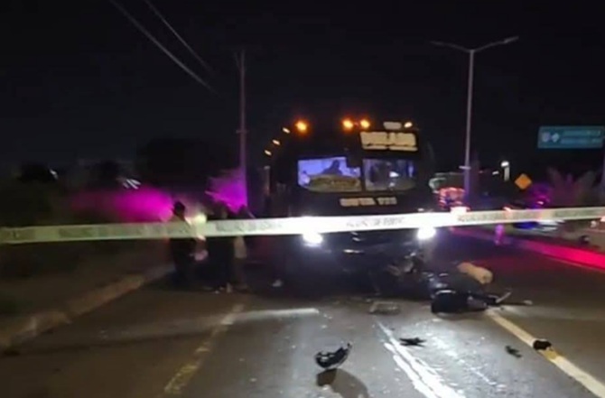 Testigos señalan que los tripulantes de la moto habrían ingresado de manera repentina al carril de circulación, provocando que un autobús de la ruta 111–Dorado no lograra frenar y los impactara.
