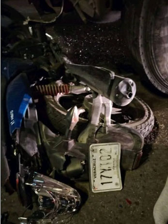 Otra versión indica que los motociclistas chocaron primero contra una camioneta particular y, segundos después, fueron embestidos por el camión de pasajeros que no alcanzó a detenerse.