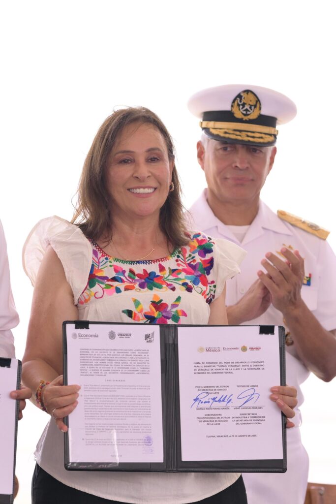 La gobernadora Rocío Nahle García encabezó la ceremonia en las instalaciones de la Administración del Sistema Portuario Nacional Tuxpan, donde afirmó que este convenio “marca un momento histórico para Veracruz y salda una deuda pendiente con Tuxpan”.