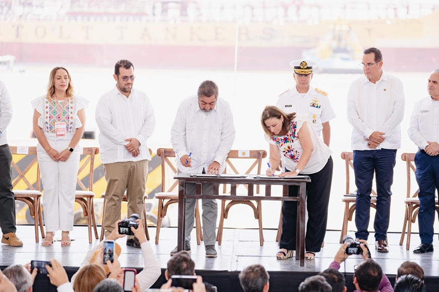Cortina Martínez fue testigo de este acto histórico que signaron la gobernadora Rocío Nahle García y el Gobierno de México, a través del subsecretario de Industria y Comercio de la Secretaría de Economía, Vidal Llerenas Morales.