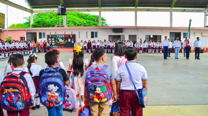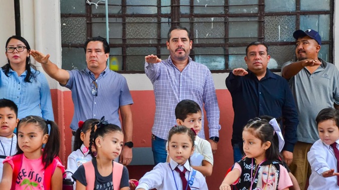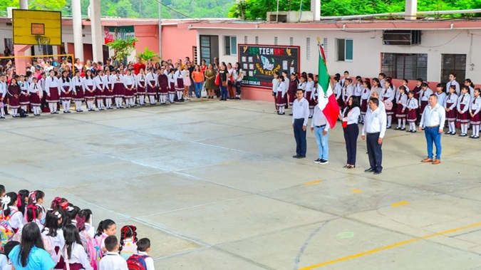 Los estudiantes, docentes, directivos, autoridades que representan a la Secretaría de Educación de Veracruz (SEV) y del gobierno municipal que emana Salvador Murrieta Moreno, representado por el Lic. José Peña Cerezo, fueron partícipes del acto cívico como parte al arranque de las actividades educativas.