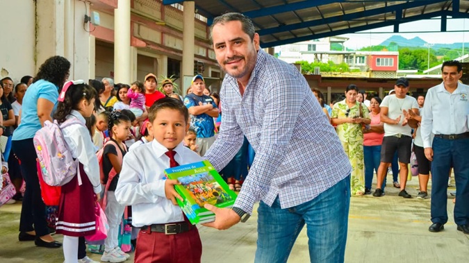 Mientras tanto el profesor Herberto Rojas Viveros, jefe del Sector Educativo 08 de primarias federales, Joaquín Rodríguez Vázquez, supervisor escolar de la zona 35 de primarias federales de Tlapacoyan, María del Carmen Murrieta, directora del plantel y el Lic. José Peña Cerezo, Secretario del H. Ayuntamiento de Tlapacoyan, fueron los encargados de hacer el protocolo de entrega de libros de texto.