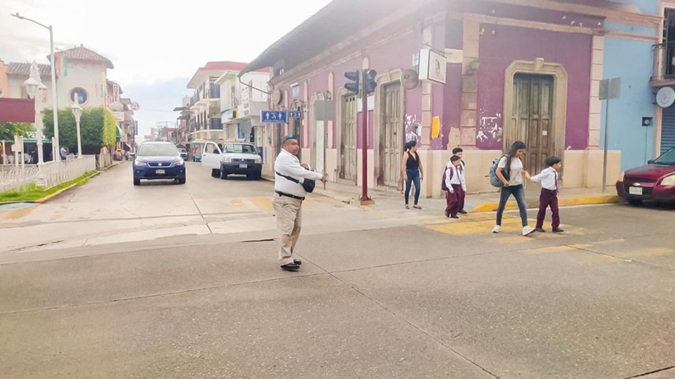 Tránsito y policía municipal despliegan vigilancia en el regreso de clases en Tlapacoyan