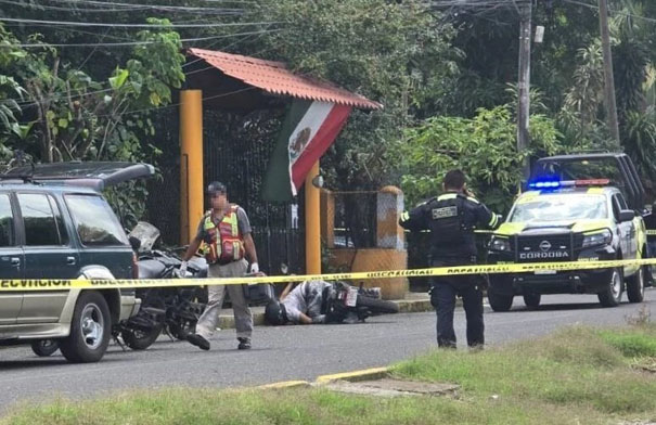 Elementos de la Secretaría de Marina, Seguridad Pública y Policía Municipal acordonaron el área para permitir el trabajo de peritos de la Fiscalía Regional de Córdoba, quienes realizaron el levantamiento de los indicios balísticos y aseguraron la motocicleta como parte de la investigación por homicidio doloso.
