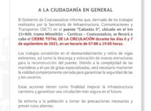 Gráfico de Coatzacoalcos #Coatzacoalcos El Gobierno Municipal de Coatzacoalcos, informa el cierre total de la circulación en el puente Calzadas II, tramo Minatitlán- Canticas-Coatzacoalcos durante los días 6
