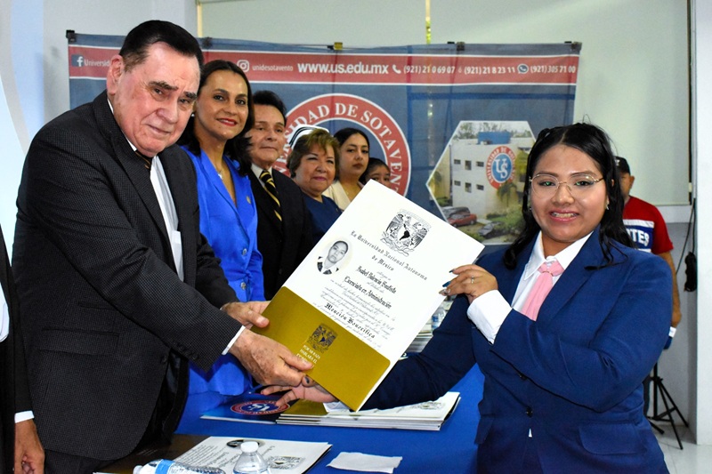 “La US y LA UNAM les reconoce como profesionales, pero también les invita a no detenerse. La formación continua y la ética son el camino para trascender y contribuir al desarrollo de nuestro país”, expresó.