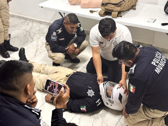 Con el objetivo de fortalecer las capacidades de reacción inmediata ante situaciones de emergencia, 40 elementos de la Policía Municipal participaron en el curso “Stop the Bleed: Save a Life”, enfocado en la atención de primeros auxilios para el control de hemorragias.