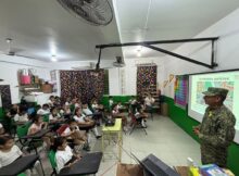 Alumnos de la Escuela Primaria Aquiles Serdán, de la Colonia Independencia de esta ciudad, que recibieron al personal militar. May Hilario Martínez de la Torre, Ver. Como parte