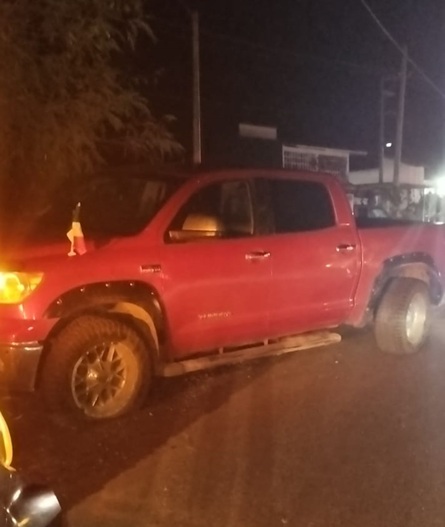 La camioneta involucrada es una Toyota de color rojo, con placas de circulación WW-1726-B del estado de Tamaulipas, unidad que presentó daños en la parte posterior de la llanta del costado izquierdo.