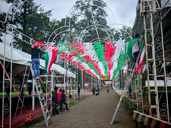 Trabajadores del área de acción social a cargo de Daniel Rodríguez Riveiro, colocan adornos patrios en la Laguna de Nogales.