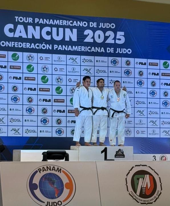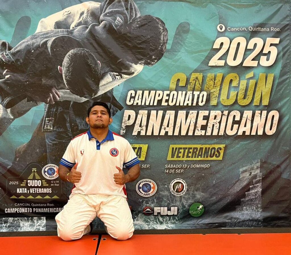 El profesor Juan Daniel Mil Guzmán, director de la Escuela de Judo de la Universidad de Sotavento, conquistó este domingo primer lugar en la categoría Máster M1, división -100 kg, durante el Tour Panamericano de Judo Cancún 2025, celebrado en el Hotel Barceló.