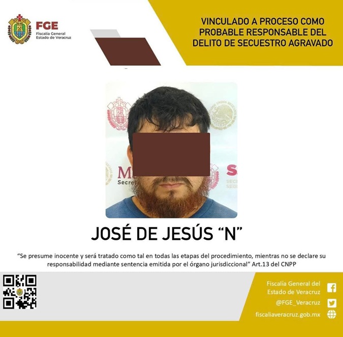 La Fiscalía General del Estado informa que, la Unidad Especializada en Combate al Secuestro y la Extorsión obtuvo vinculación a proceso en contra de José de Jesús “N” como probable responsable del delito de secuestro agravado.