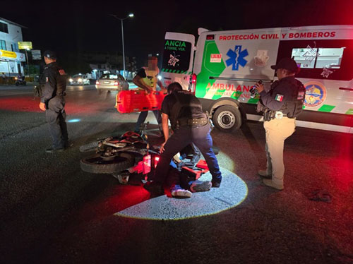 El cuerpo del motociclista aparatosamente queda sobre su propio caballo de acero inconsciente, lugar donde paramédicos de Protección Civil le brindan la atención prehospitalaria y debido a la gravedad del caso, lo trasladan al hospital IMSS bienestar.