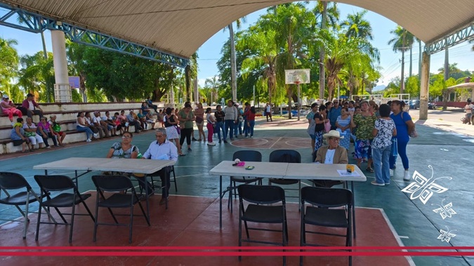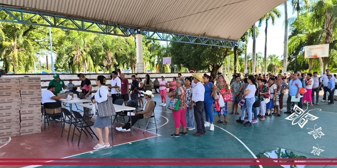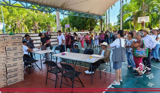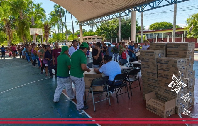 Esta dotación corresponde al mes de septiembre, por lo que las beneficiarias fueron convocadas para este día en las canchas de la colonia Padre Hidalgo, donde se dieron cita desde primera hora para obtener este beneficio alimentario que llega de manera permanente.