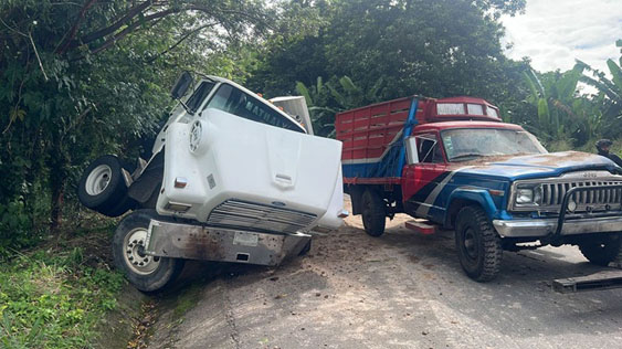 El pesado camión transportaba toneladas de arena; sin embargo, en la zona antes mencionada, sobrevino la aparatosa colisión y quedó desflechado.