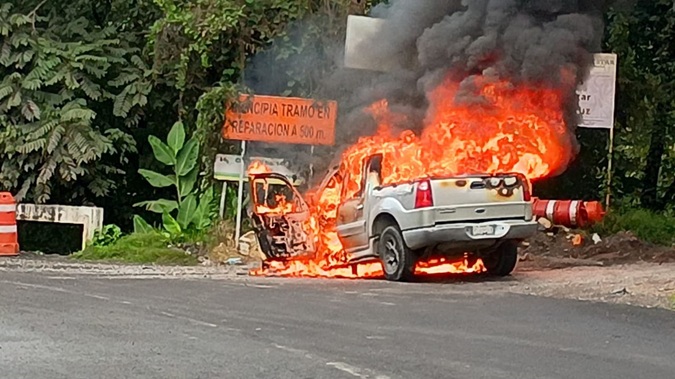 ¡Arde camioneta en Atzalan!