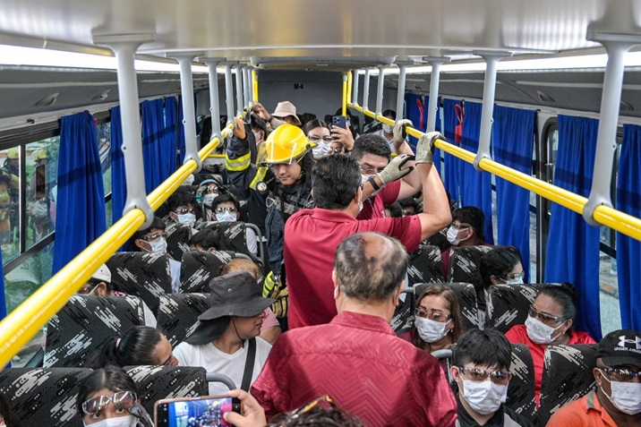Para garantizar la seguridad de los estudiantes, un autobús de la empresa Sales del Istmo los llevó a una zona segura mientras se confirmaba que no existía peligro.