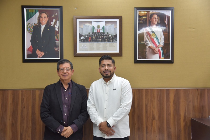 El secretario de la Mesa Directiva de la LXVII Legislatura del estado de Veracruz, diputado Alejandro Porras Marín, recibió al titular de la Dirección General de Cultura de Paz y Derechos Humanos de la Secretaría de Gobierno del Estado, Alejandro Moreno Hernández, con quien dialogó acerca del contenido del Programa Especial de Cultura de Paz y Derechos Humanos, enfocado en la coordinación interinstitucional para lograr metas a corto y mediano plazo en esta materia.