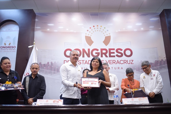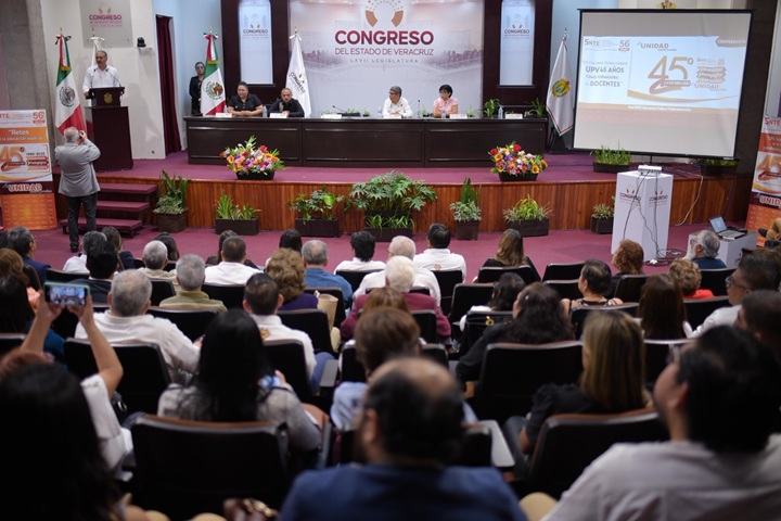 En el auditorio Sebastián Lerdo de Tejada del Palacio Legislativo se realizó este acto el cual registró la asistencia del rector y exrectores de esta casa de estudios y miembros del Sindicato Nacional de Trabajadores de la Educación (SNTE).