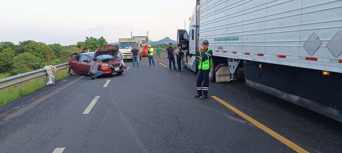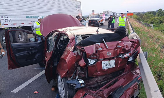 El choque fue por alcance, ya que el vehículo estaba parado por unas obras que se estaban realizando en la pista, y el tráiler lo impacto por atrás, resultando 5 personas adultas heridas y un menor de 2 años, los cuales fueron trasladados al Hospital Civil y Clínica del IMSS en Martínez de la Torre, por ambulancias de la Comisión Nacional de Emergencia, Deleg. San Rafael, Ver., así como la Unidad de Protección civil de San Rafael, y la ambulancia de la pista.