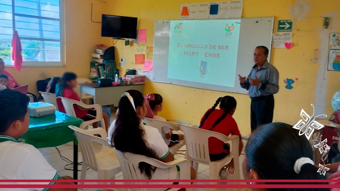En esta ocasión el Cronista Municipal presentó su ponencia «El orgullo de ser martinense» a alumnos a escuelas de la localidad Zapote Bueno, siendo la Primaria “José María Mata” y la Secundaria “Sor Juana Inés de la Cruz” donde recibieron esta importante información, la cual les permitirá hacer una valoración de su municipio a partir de conocer la historia del mismo, así como de sus figuras históricas.