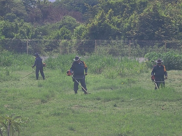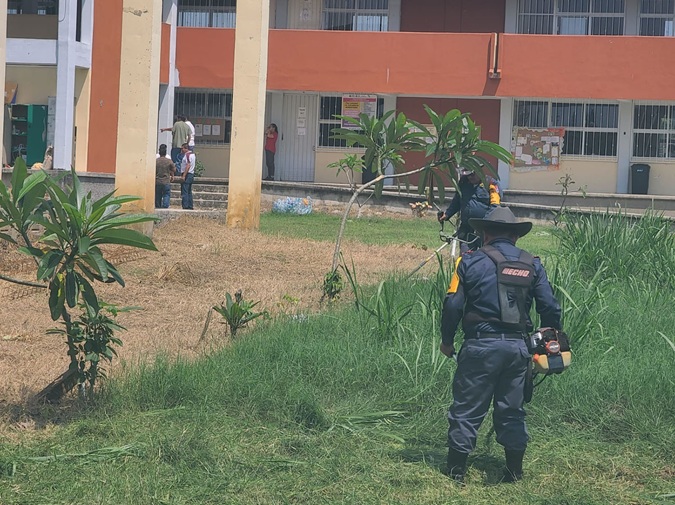 Para mejorar la seguridad de la niñez preescolar del jardín de niños Margarita Maza de Juárez, personal del cuerpo de Defensas Rurales, realizaron labores de limpieza.