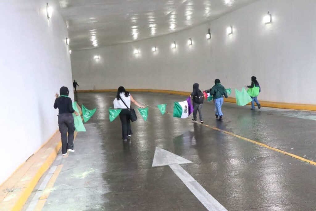 El ayuntamiento de Xalapa no ha concluido aún la remodelación y repintado de este icónico lugar de la capital veracruzana, cuando la tarde de este domingo un grupo de mujeres encapuchadas vandalizaron y cerraron el paso a la circulación en el Viaducto del Parque Juárez en la Capital Xalapa, tomado como pretexto el Día de Acción Global por el Aborto Legal.