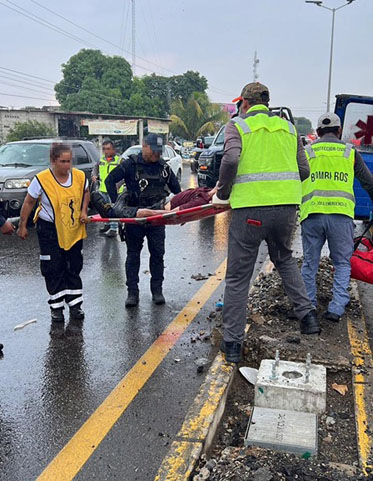 Conductores que lo vieron de inmediato dieron parte al servicio de emergencia 911 y fue así como paramédicos de Protección Civil y Bomberos, así como también de Cruz Ámbar, llegaron hasta el lugar para brindarle la atención prehospitalaria.