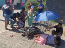 Al lugar acuden cuerpos de socorro de Comisión Nacional de Emergencia Vega de Alatorre, Ver. Dos femeninas resultaron lesionadas, después de ser atropellados por un motociclista, por