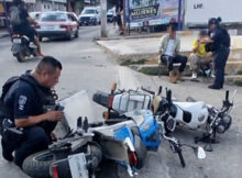 Son atendidos por paramédicos de Protección Civil Miguel Torres Carrillo Martínez de la Torre, Ver. Par de motociclistas rodaron sobre el pavimento, luego de que se estrellaran